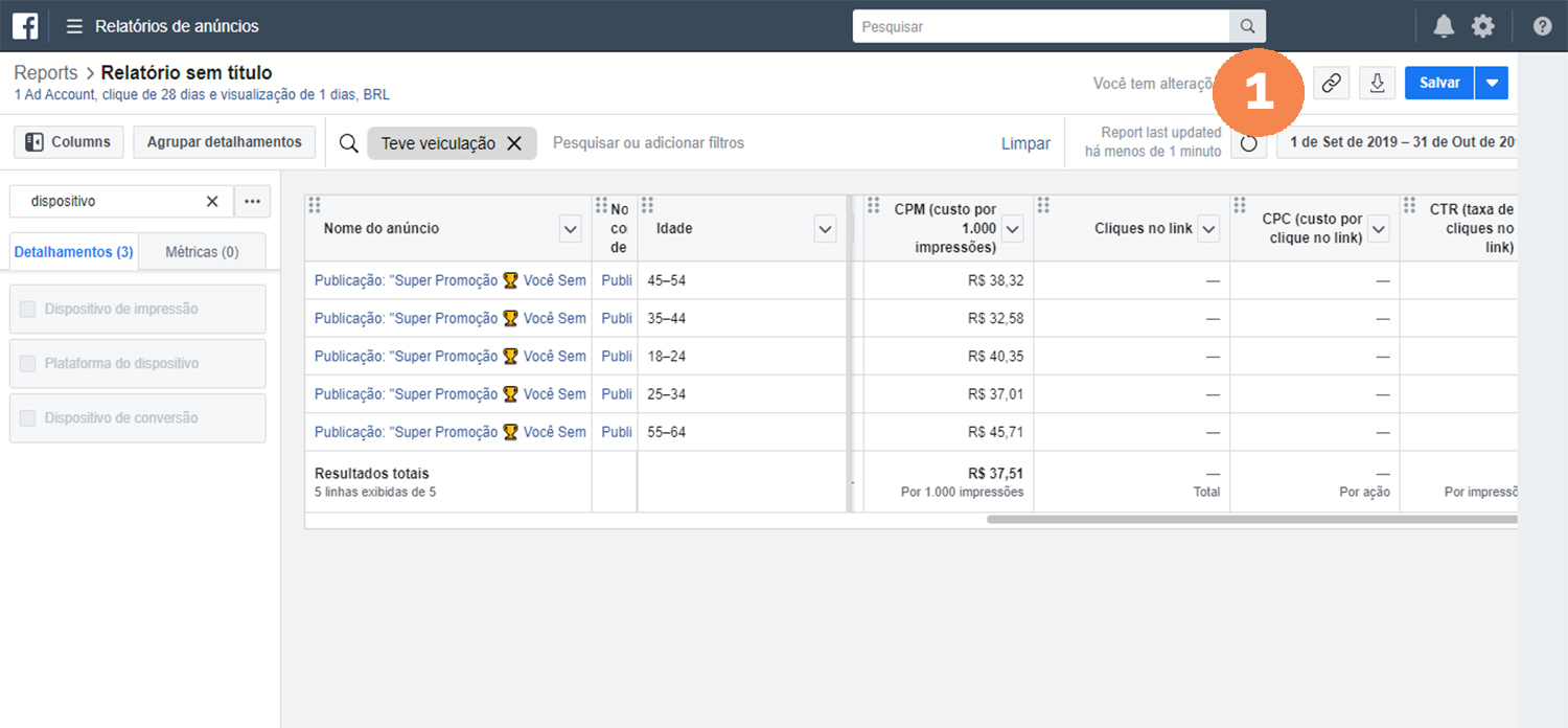 Exportando, compartilhando e salvando relatórios de anúncios do Facebook