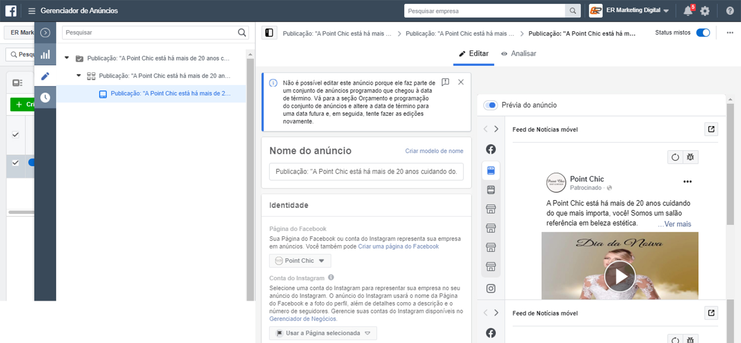 • editar os criativos do anúncio (imagem, texto, link, frase de chamariz)